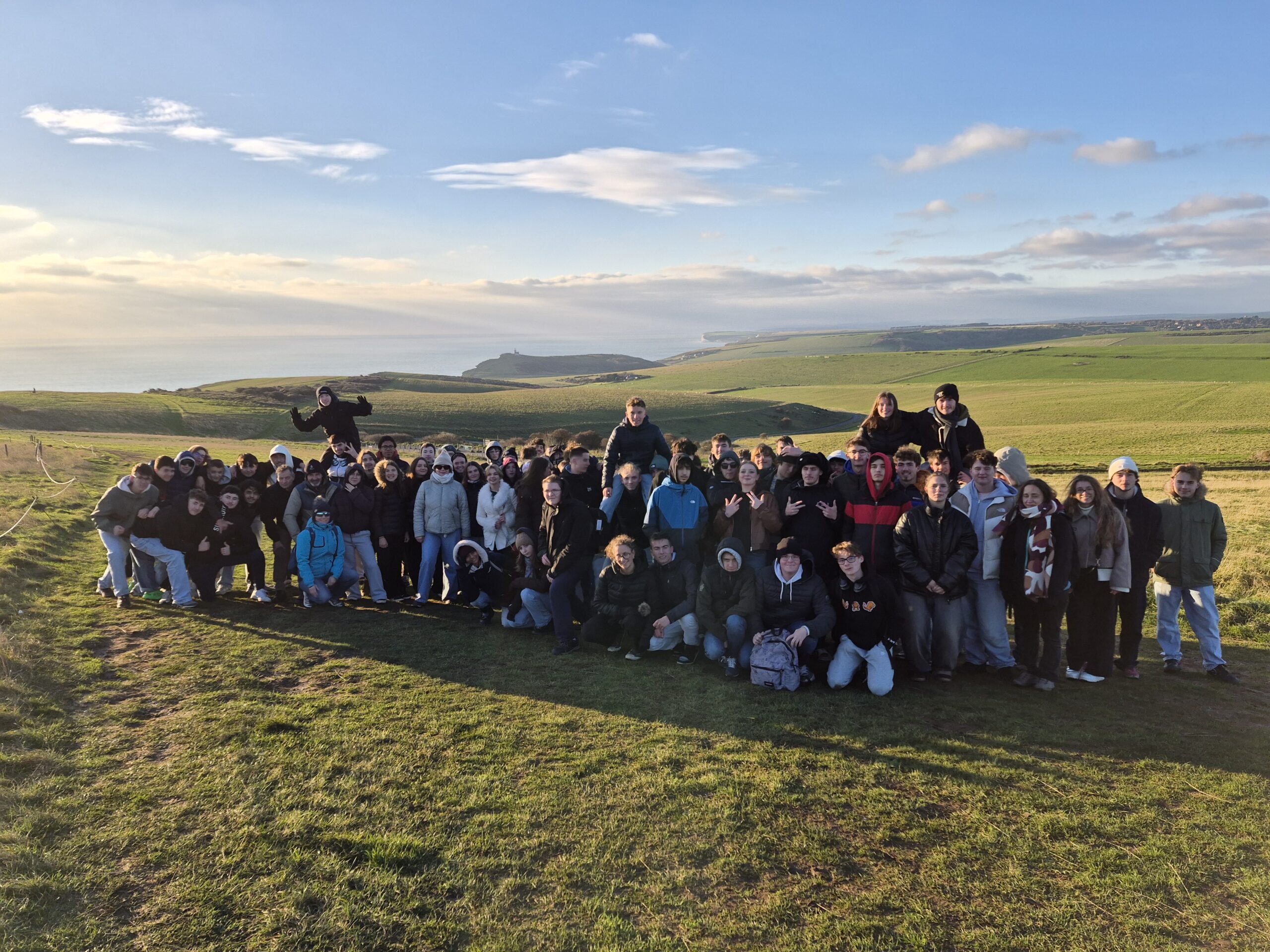 Le deuxième jour direction Brighton en bord de mer au sud de Londres, c’est là que les élèves des filières technologiques ont découvert Rampion Wind Farm, l’installation de production électrique composée de 116 éoliennes en mer. En parallèle, les élèves de la filière générale ont visité le Royal Pavilion, une étonnante ancienne résidence royale au style exotique. L’après-midi une randonnée était organisée aux Seven Sisters, de majestueuses falaises crayeuses situées dans le Sussex (« Ce qui m’a le plus marqué du voyage, c’est la ballade sur les falaises », Adrien).